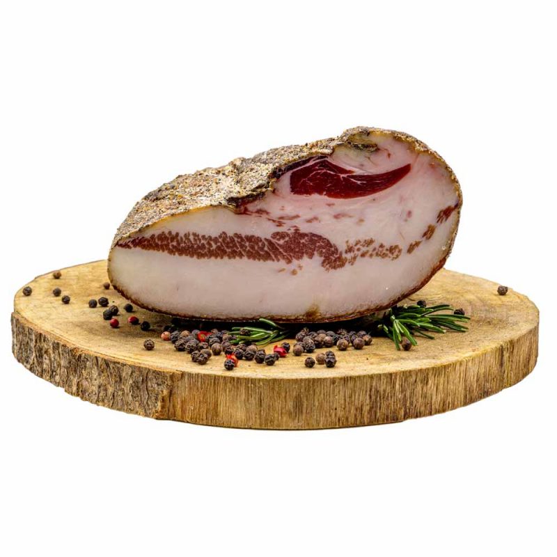 ll guanciale di nostra produzione, realizzato interamente con suino siciliano, è saporitissimo e speziato, il prodotto ideale per rendere unici i vostri sughi o i soffritti.