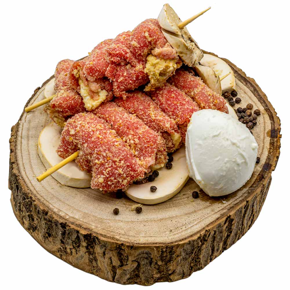 Involtini di Vitello ripieni di Mozzarella di Bufala e Funghi Porcini.